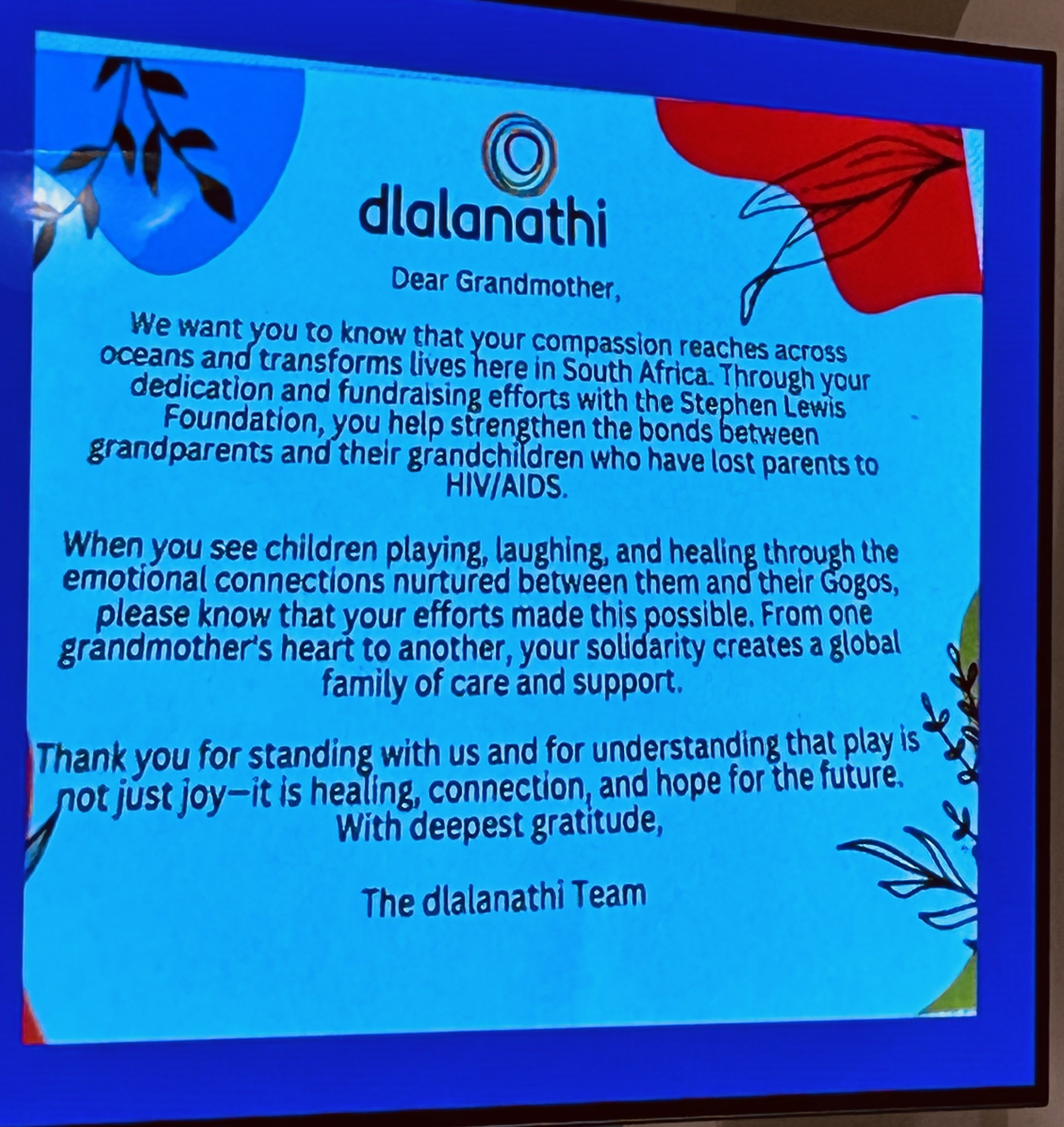 A letter from one of SLF funded programs in South Africa